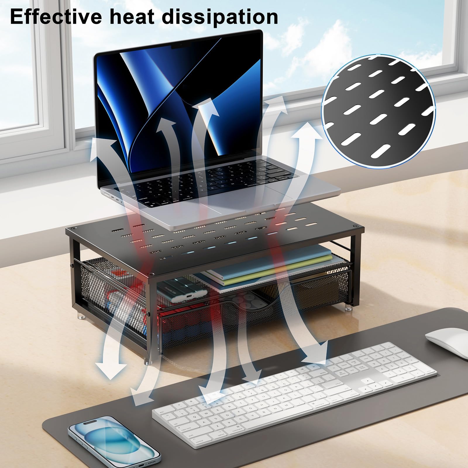 - 【Powerful and stable】: The monitor riser is designed with ventilated heavy steel plates and steel legs, which has a very large load-bearing capacity and effectively prevents equipment from overheating. Non-slip rubber pads provide stability during work.