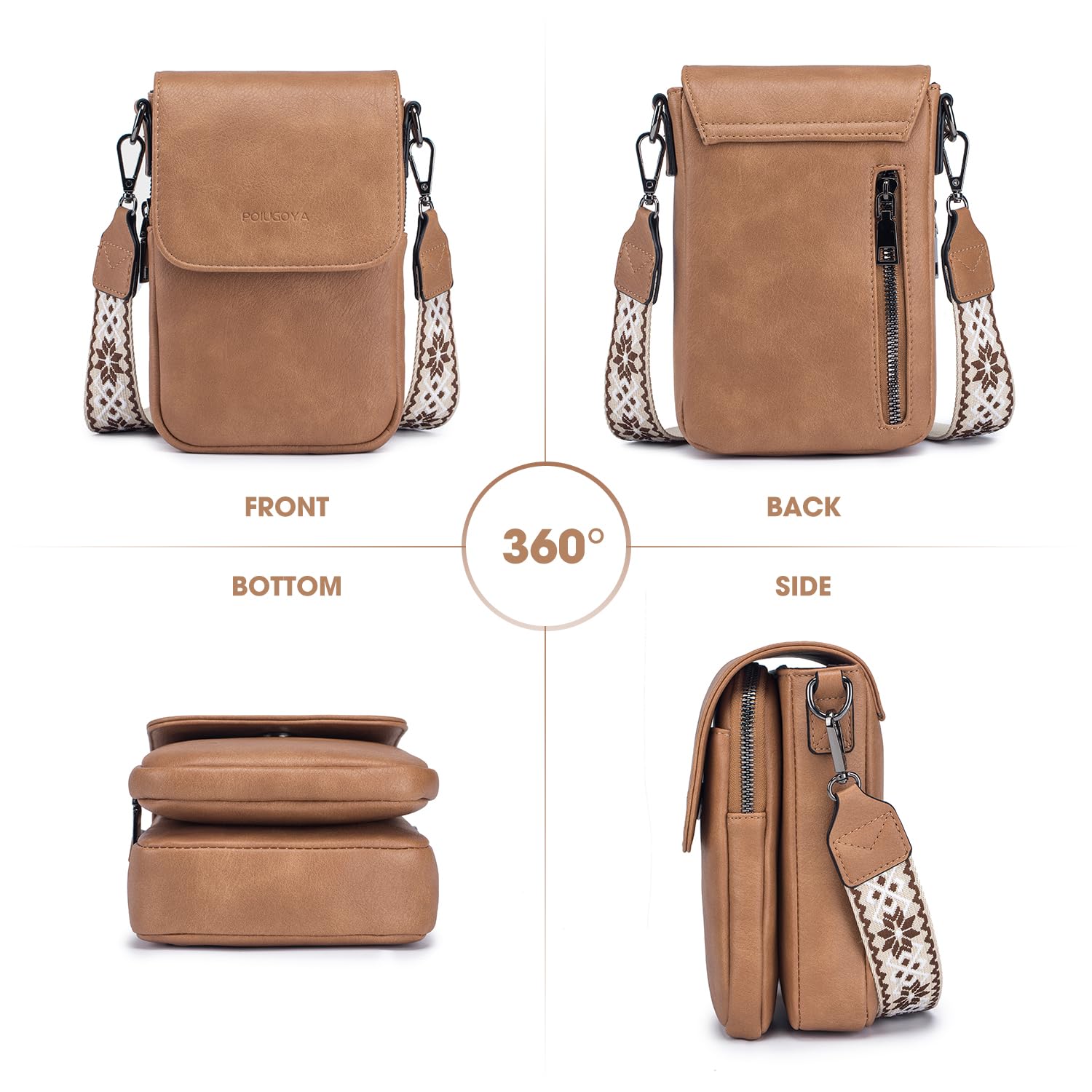 - Soft leather Phone Purse:POIUGOYA Small crossbody bags for women is selected soft vegan leather,feels soft to the touch. With simplistic body, sliver hardware, and front double zipped compartments make this bag practical and functional.This small purse with smooth zipper, no need to worry about getting stuck, keep your phone and items safe.This stylish phone purse is great to carry with you everywhere you go.