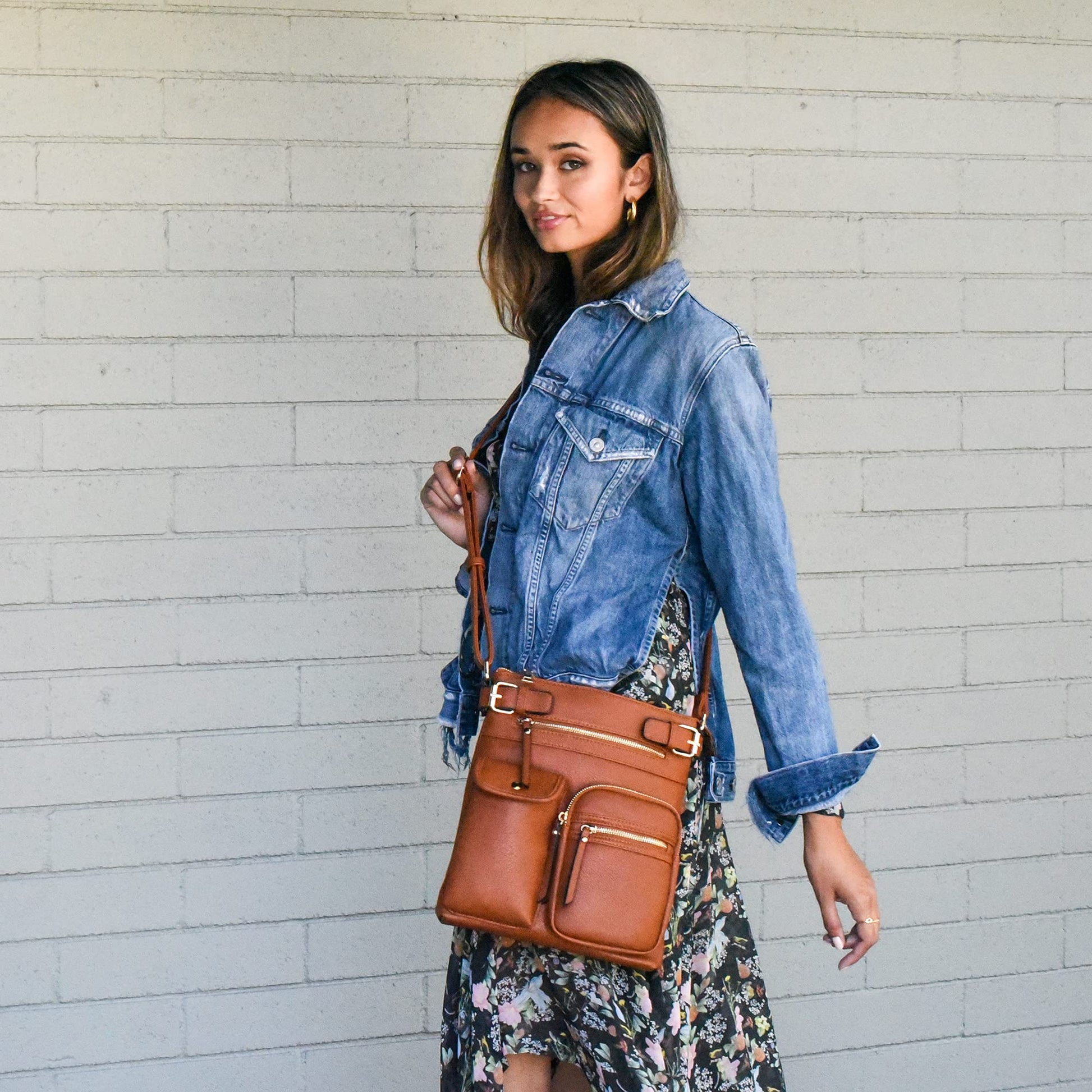- TRENDY & FASHIONABLE: This trendy fashionable bag features 3 front zippered pockets, one snap pocket, and one zippered pocket on the back. Interior contains 1 zipper pocket and 1 slip pocket. The top zipper pocket is smooth and easy to open and close. The interior consists of a soft fabric perfect for carrying cell phone or smartphones. It can fits up to plus size / large cell phones. Styling this small crossbody bag is extremely easy to achieve.